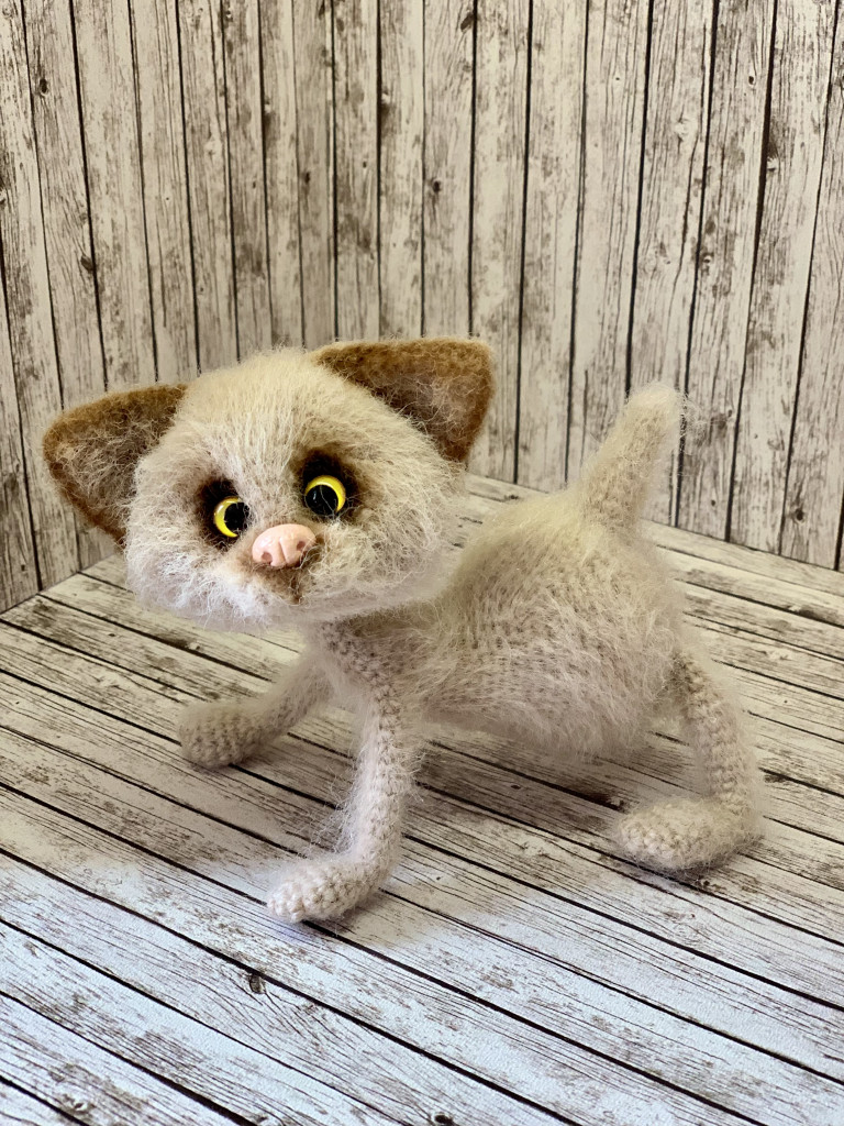 Котёнок по мк Татьяны Коротких, вязала в подарок сестре на день рождения