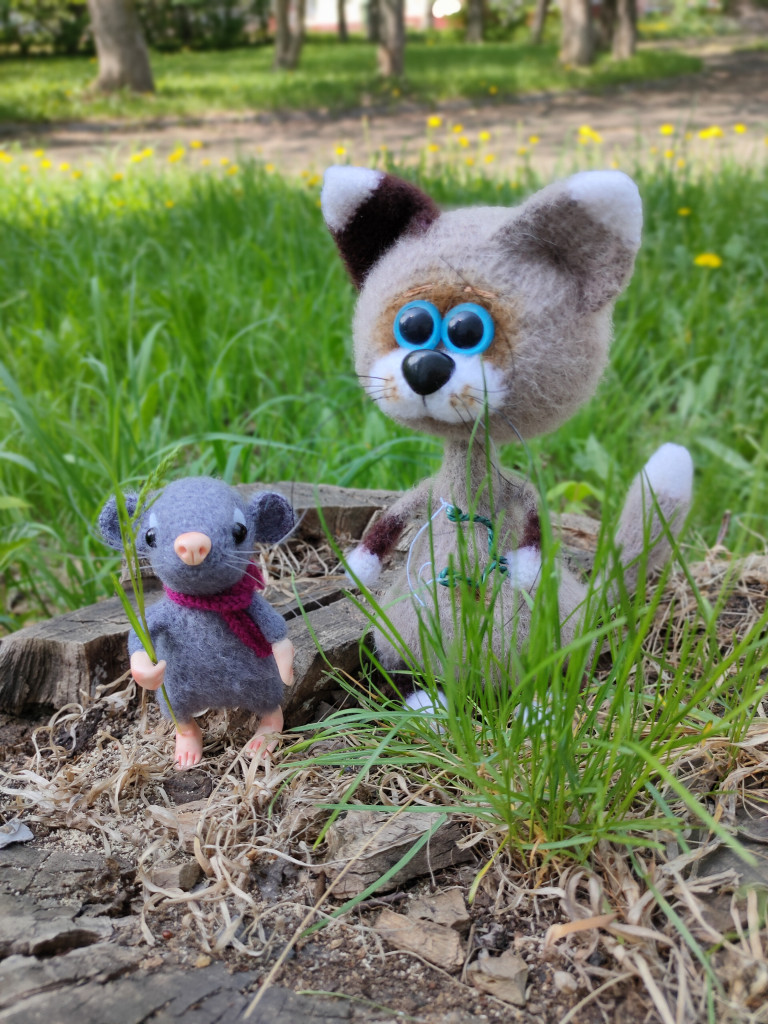 Кот Хулиган и мышонок Пит. Понимаю , что мышатам не сюда , но их уже не возможно разделить . Кот связан по МК Ксении Щербининой , а мышонок по МК Ольги Кулишевис