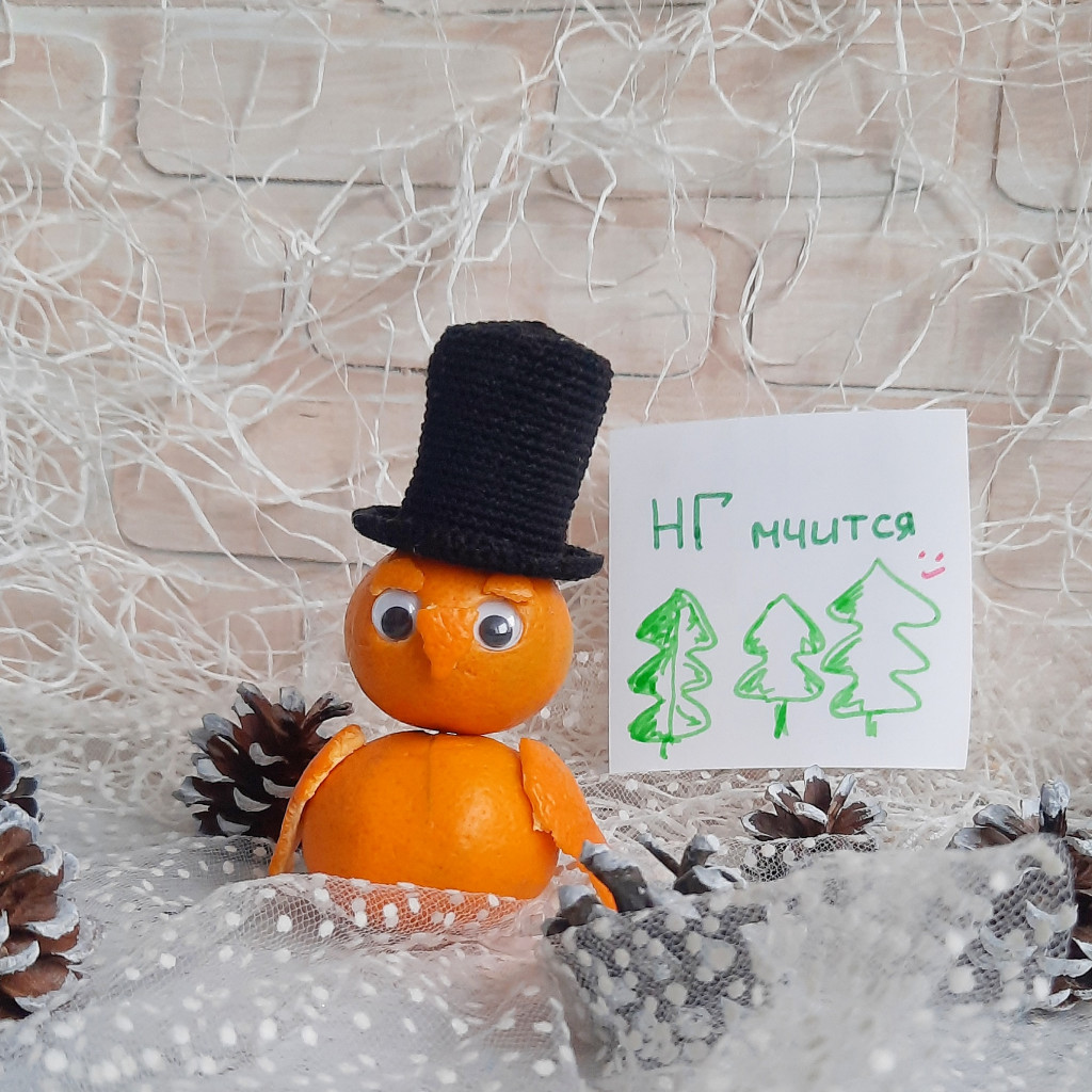 Чистим мандарины, едим мандарины, покупаем мандарины (это, наверно, первым пунктом должно было быть))), рукодельничаем мандаринами)))) Хочу от вас фото (с бумажкой "нг мчится" все помнят?)) мандариновых скульптур - сложносочиненных!))) Снеговиков я уже от вас видела)))