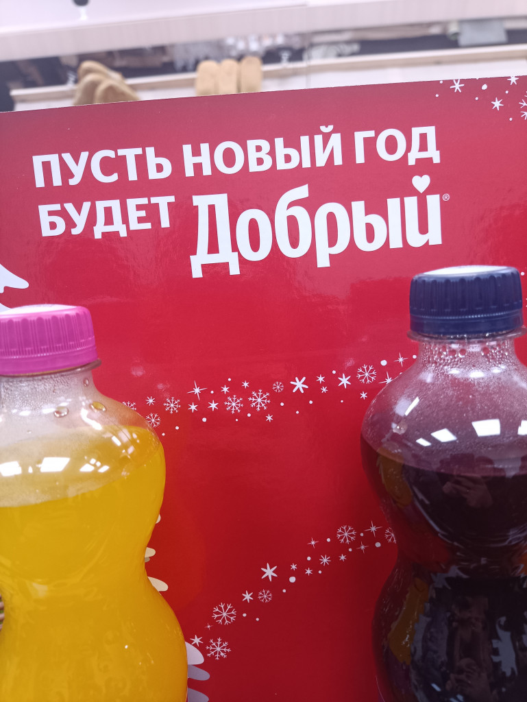 Как оказалось, найти обычные слова с Новым годом на витринах и вывеска проблематично!