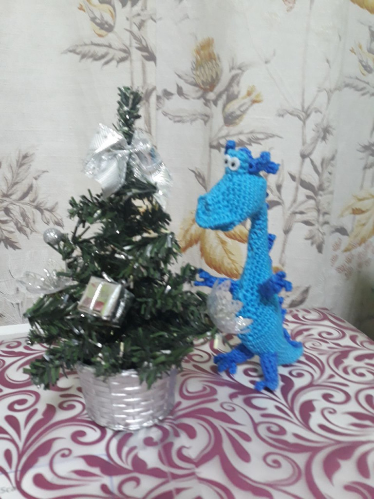Дракон по МК Татьяны Величко Markovka_crochet, прямо с конкурса "Какое небо голубое".