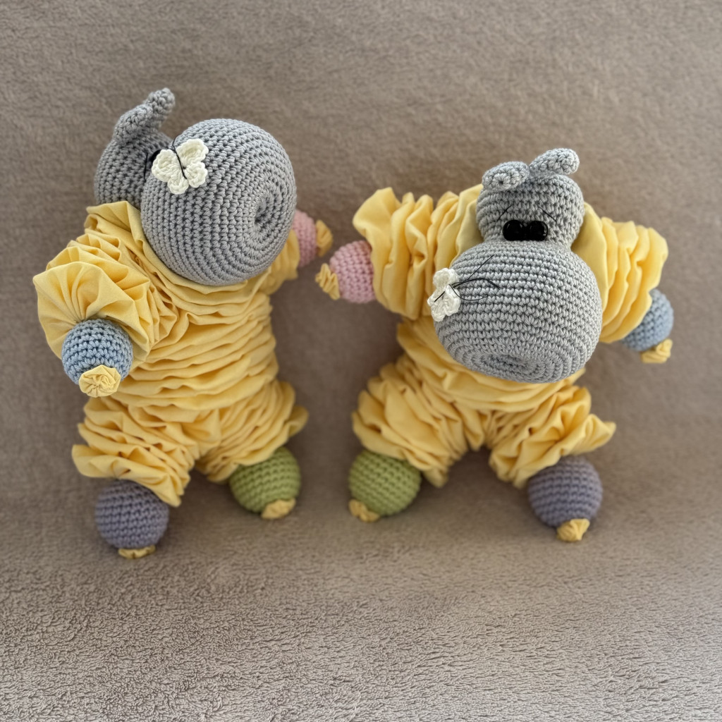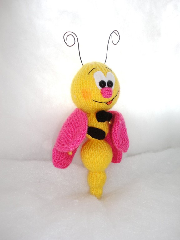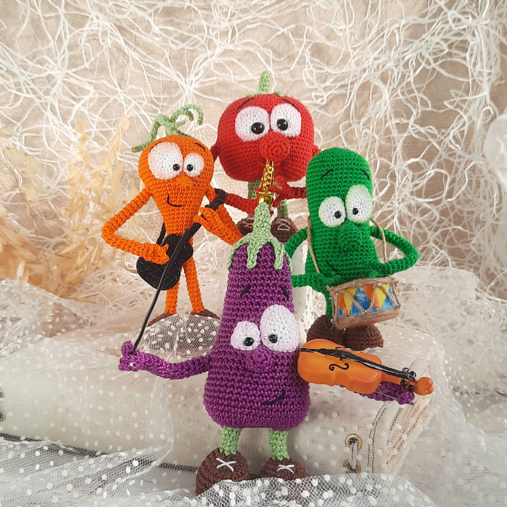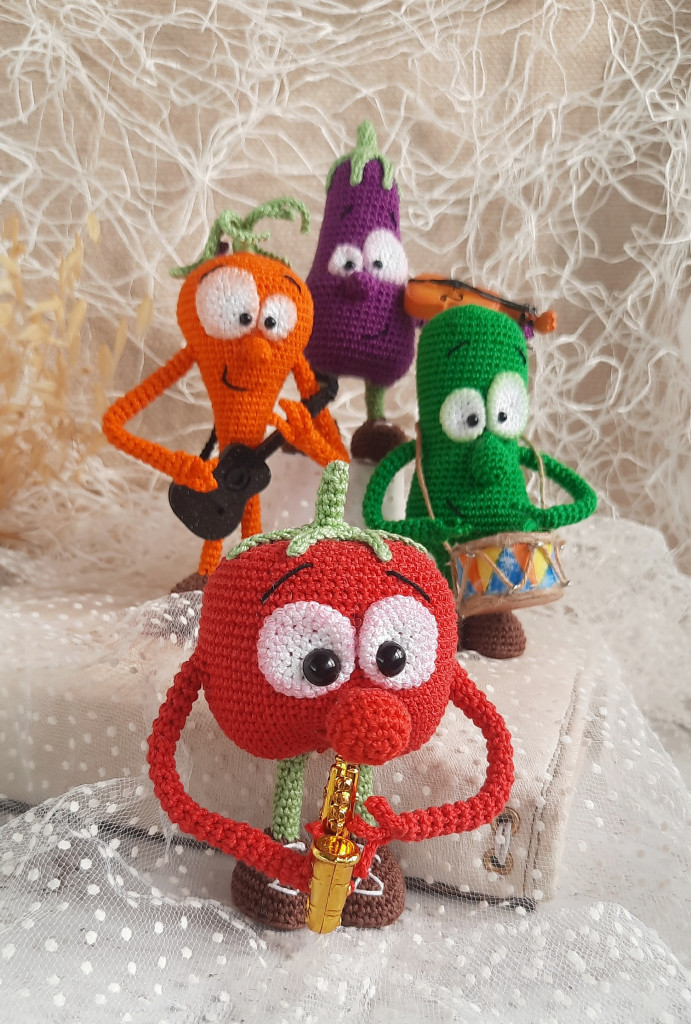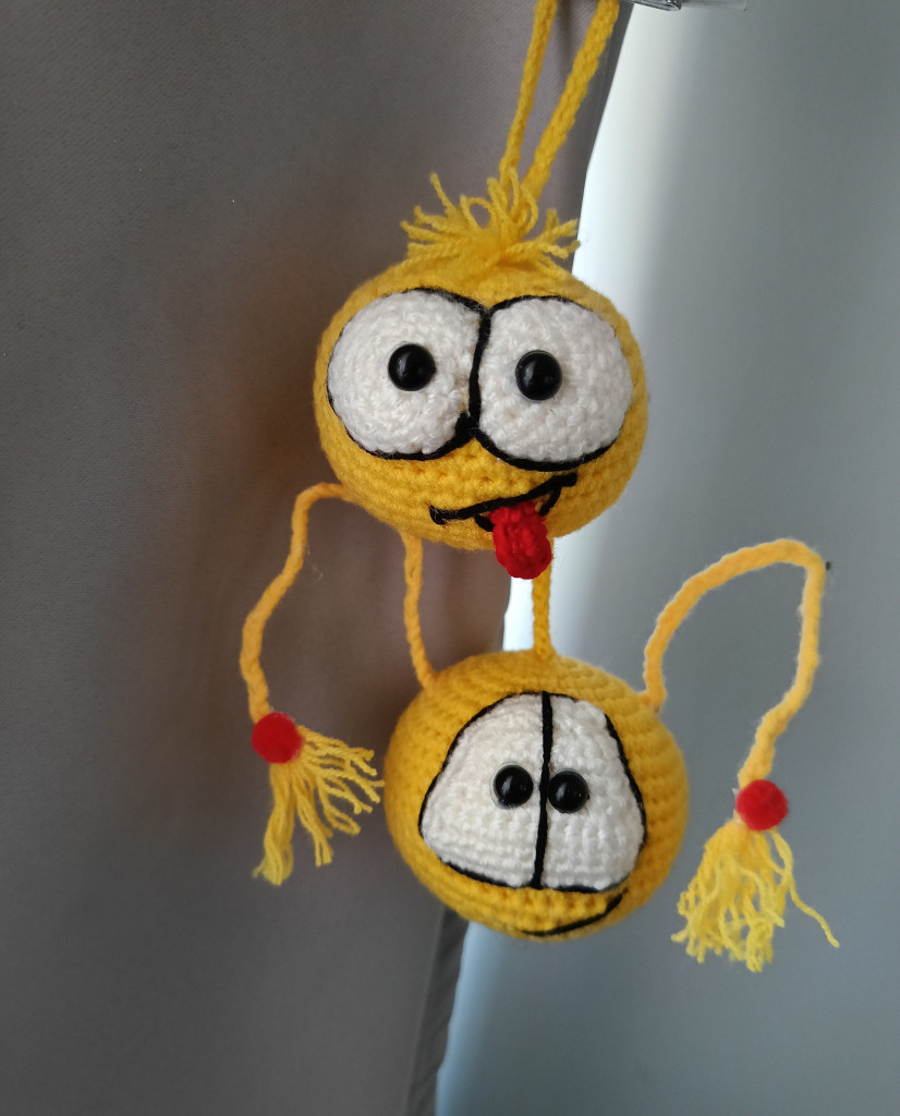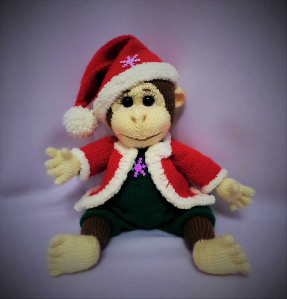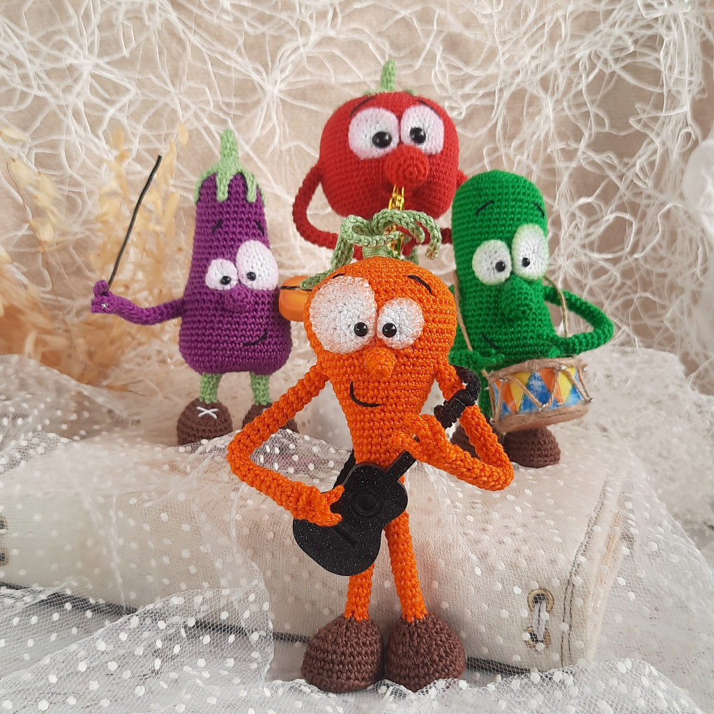 Голова связана крючком, ноги и руки обвязанные деревянные бусины, тело сделано из ткани.
