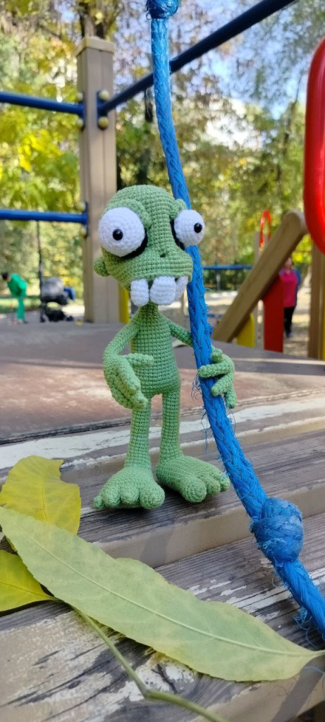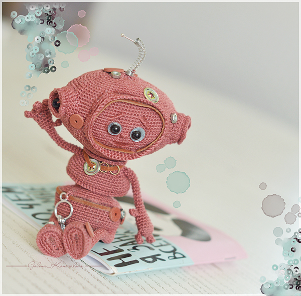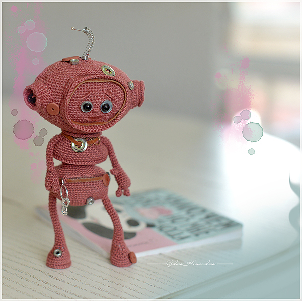 А я роботёночка покажу по МК Светы Перцевой. 14 см, крючок 0,9, Пехорка ажурная
