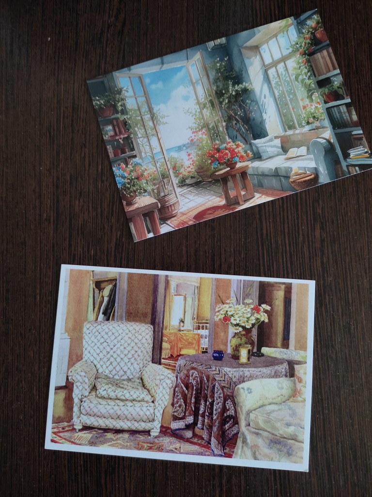 Наташа @totoshka ,забираю верхнюю открытку интерьер.