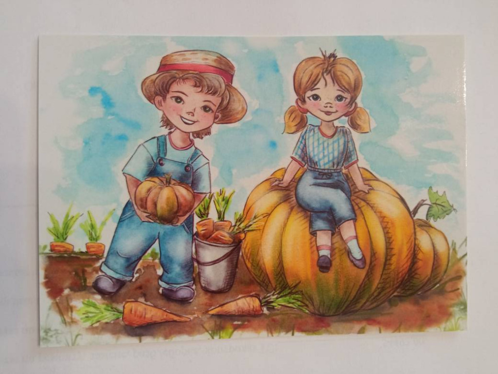 Ещё интересно, что на встречной открытке не штампики, а пожелания, наверное, потому что она небольшая по размеру.
