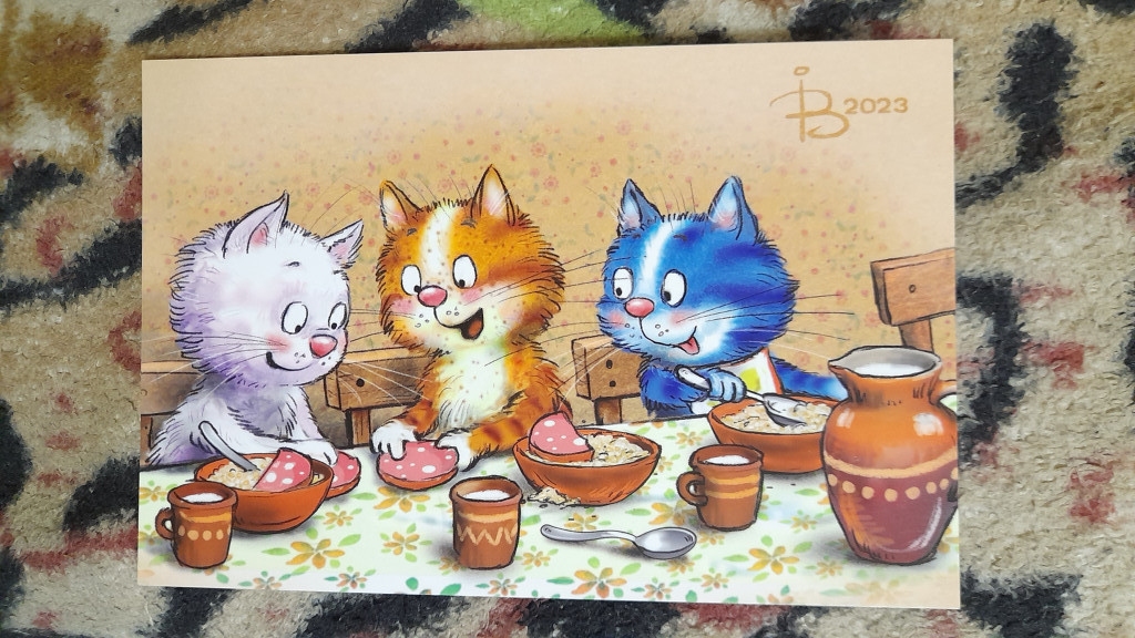 Собачка у Марины Молодчей была в совместной печати, у меня только одна открытка была, а то бы тебе тоже подарила