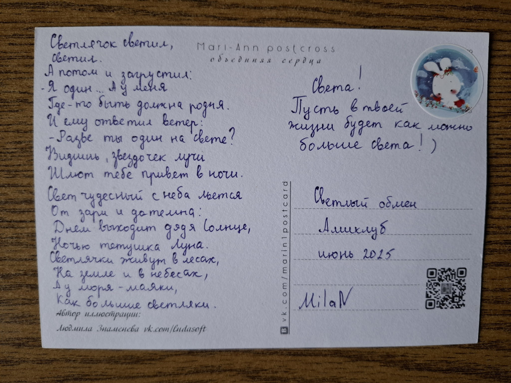 А еще я конвертик от @MilaN получила по светлому обмену. Очень красивая лисичка, а стишок то какой