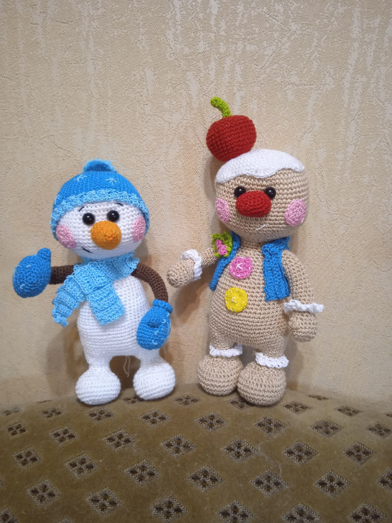 Вязала снеговика в подарок коллеге на Новый год по МК Анны Загривной.