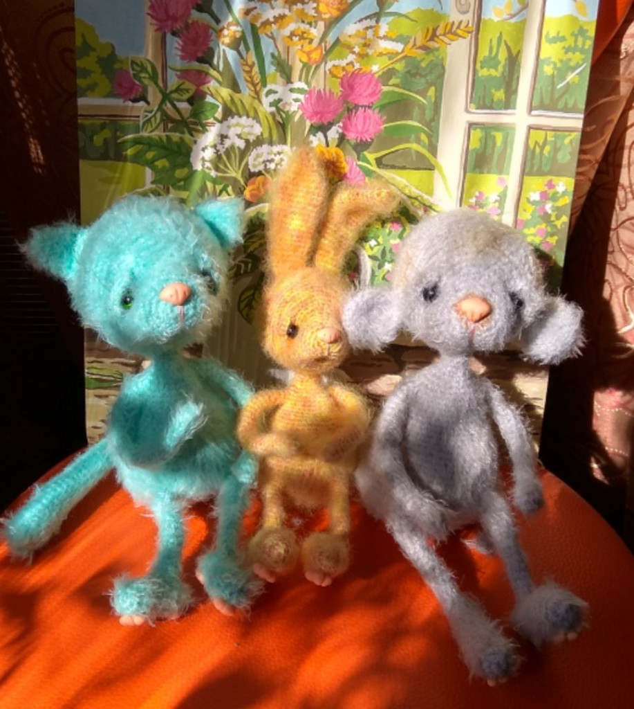 Связан из Ангора Голд. Полностью на проволочном каркасе, голова на шплинте. Тонировка - масляная пастель, акрил и масляные краски. Глазки - стекло.