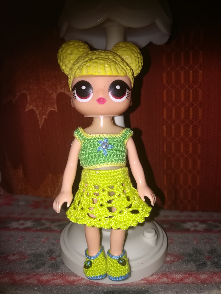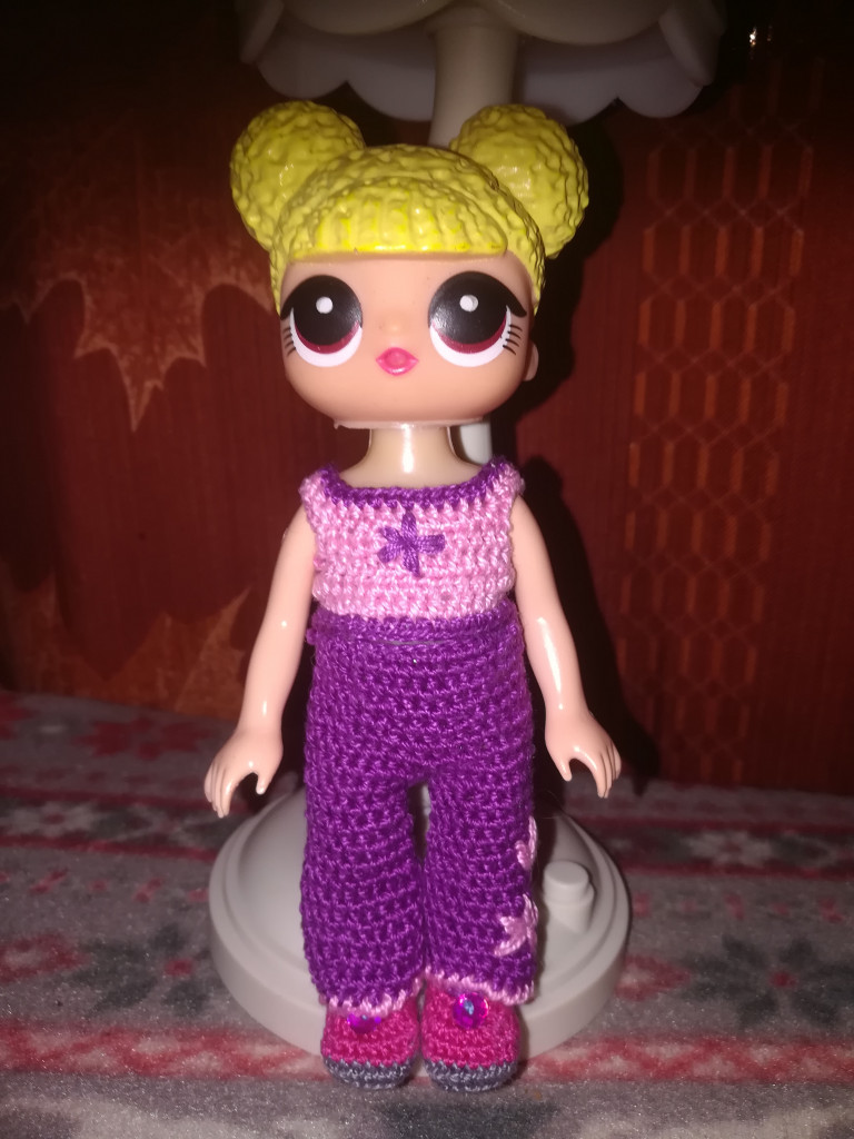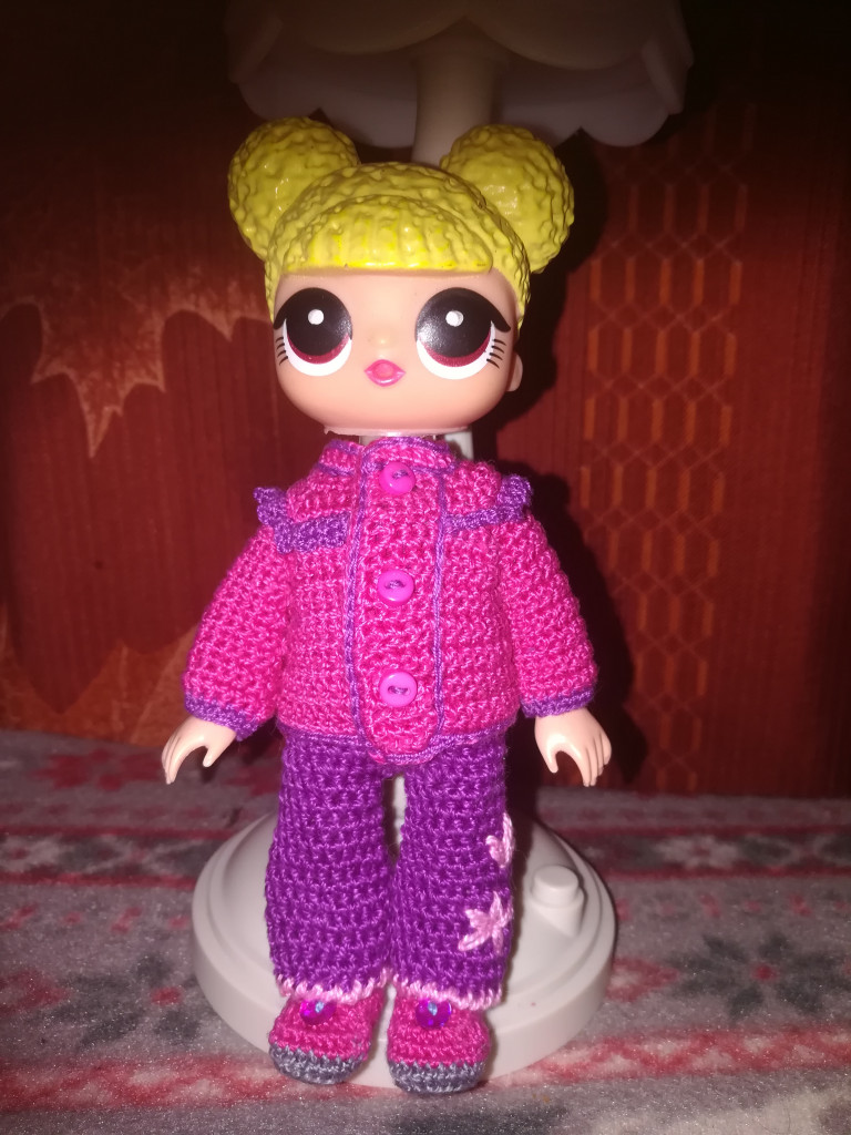 Помимо игрушек вяжу одежду на кукол. Это заказ девочки на любимую куколку. Без мк ,сама