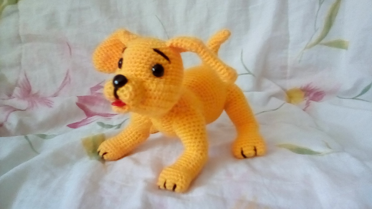 Собачка Пуговка связан по описанию Юлии Оголь (Везунчики)