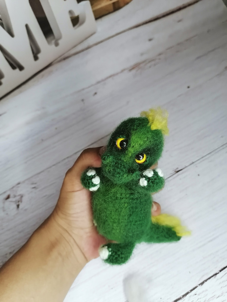Дракоша Васька , авторская игрушка. Пряжа Alize real40, внутри проволочный каркас, пальчики, руки, голова, подвижные, стоит самостоятельно, глазки стекло. 23см в высоту, а если вытянуть шею, то все 27! )