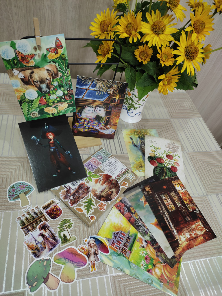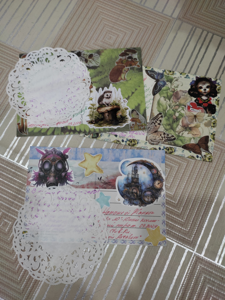 А прибыл вчера ко мне очередной волшебный чудо-конверт от Жанны @nisana . Столько красоты! Открытки из Сюрпризного алфавита: Ёжик, Щенок и Юный космический пират!