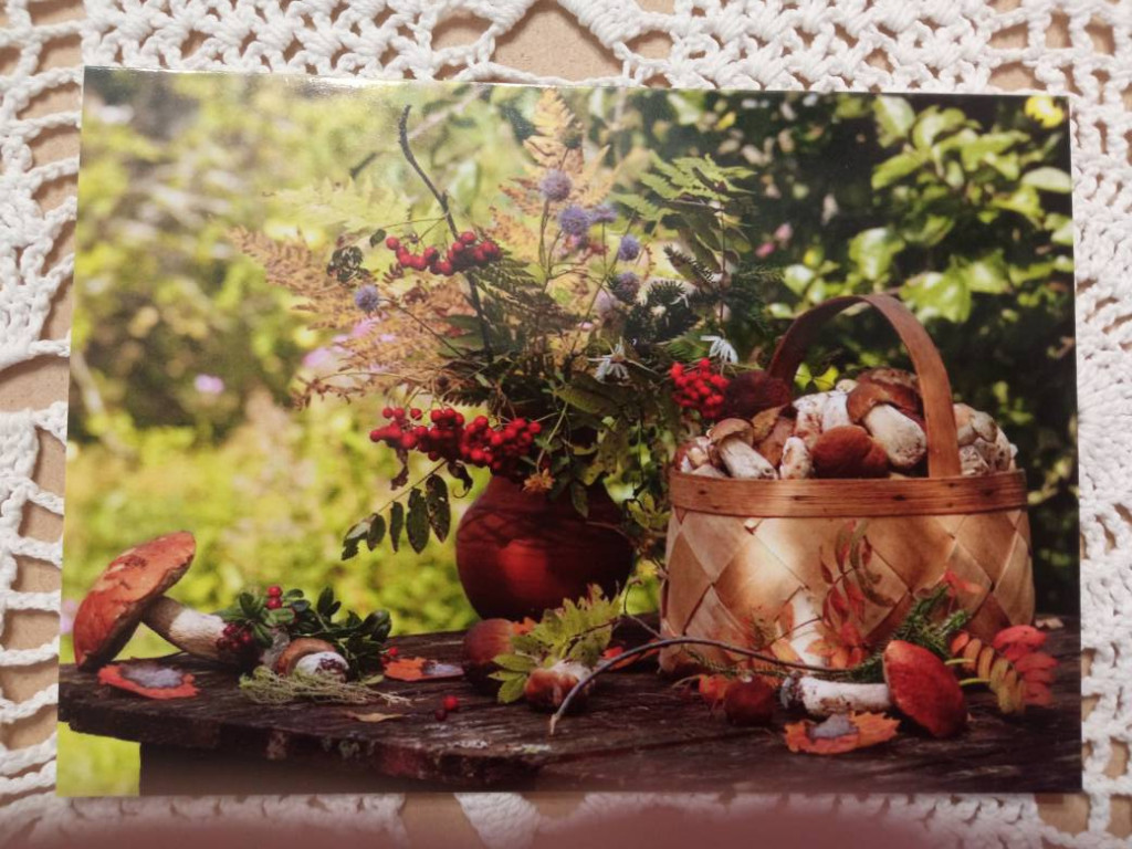 А ещё осенний привет с такими чудесными открытками, просто восхитительная красота! А какое волшебное оформление открыток! Жанна, огромное спасибо за такое чудо!!!