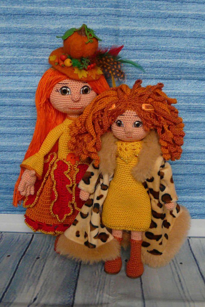 Мисс Осень с дочуркой Златой. МК есть в авторском разделе тема "осенние куклы".