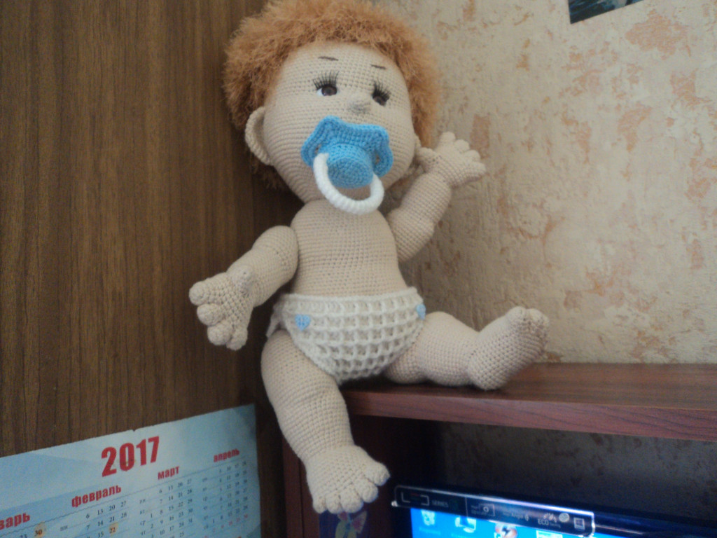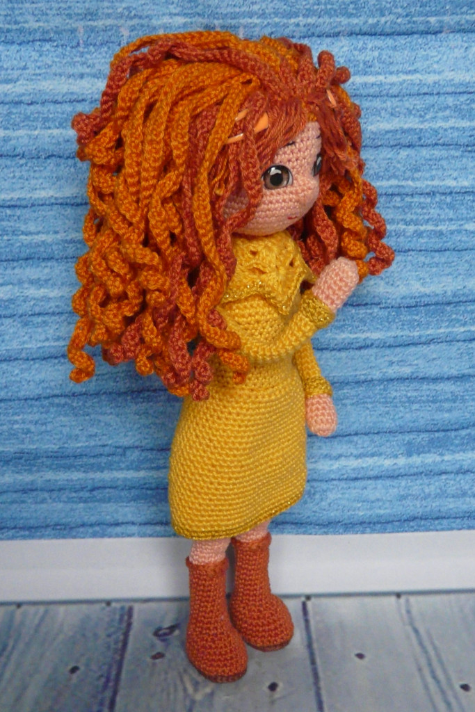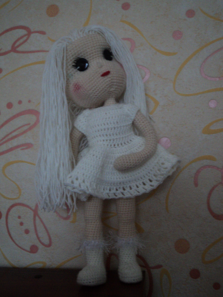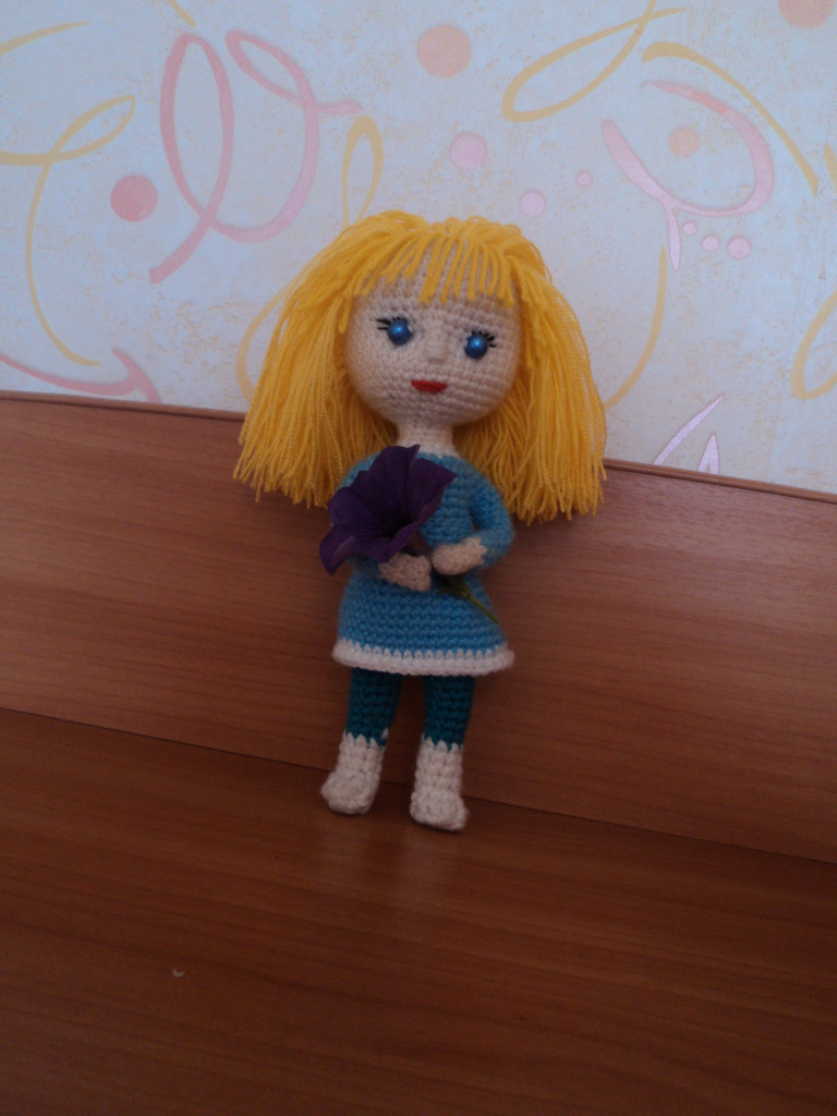 Связана по мк Леси Медведевой, рост 26 см, нить филодискозия N5, кр 1, шарнирная, голова поворотная, волосы акрил