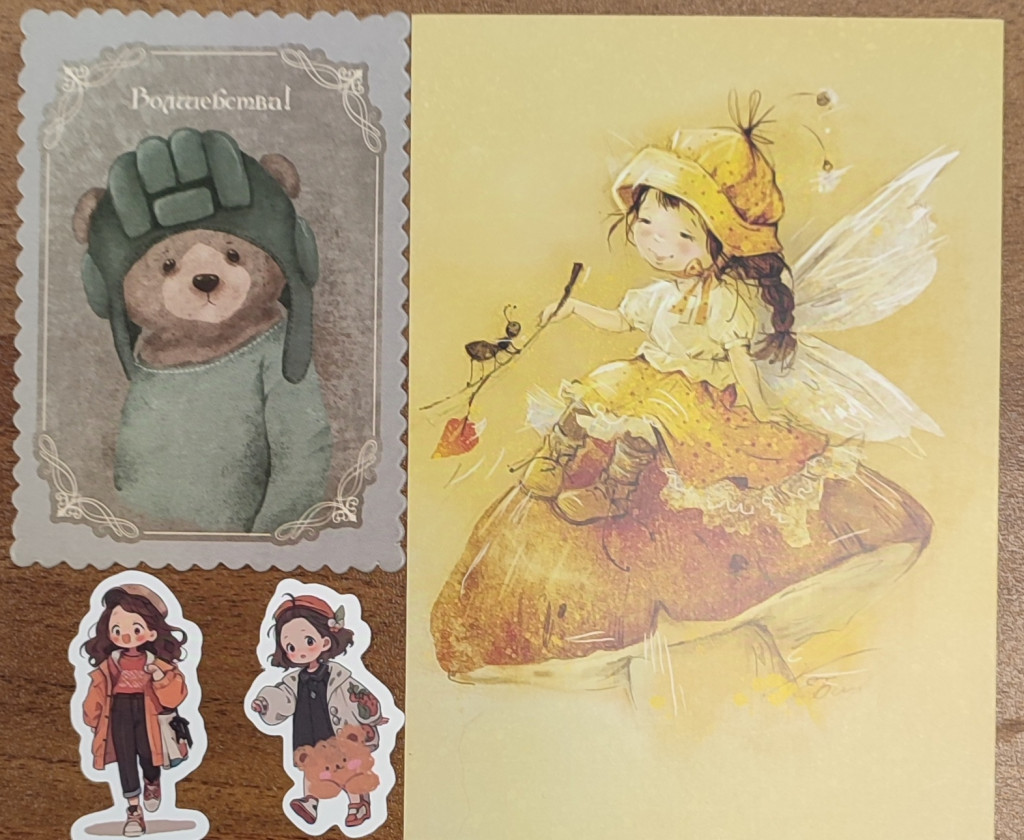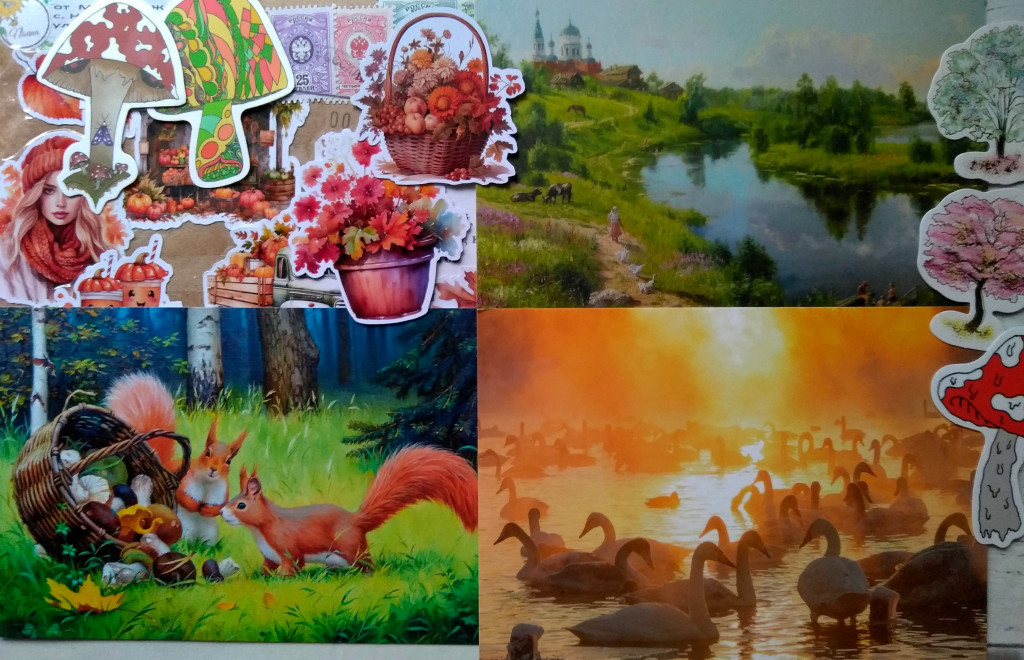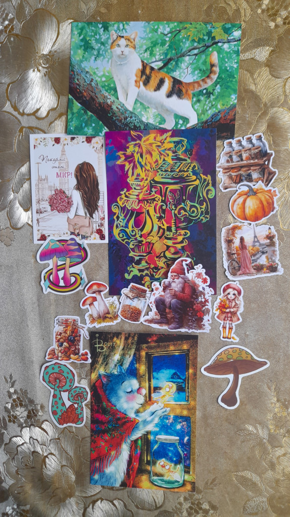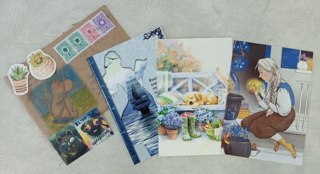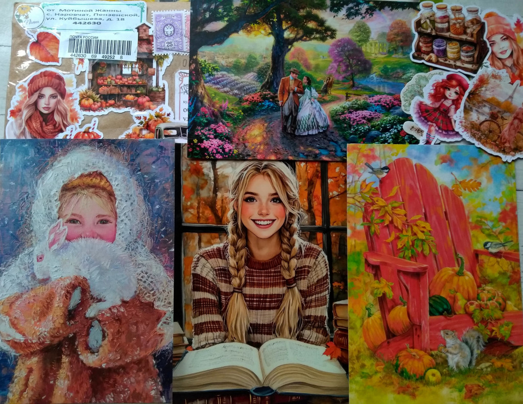 А ещё открытка Ольги Симоновой в мою коллекцию, сюрпризные по осеннему обмену и разные бумажные нужности.