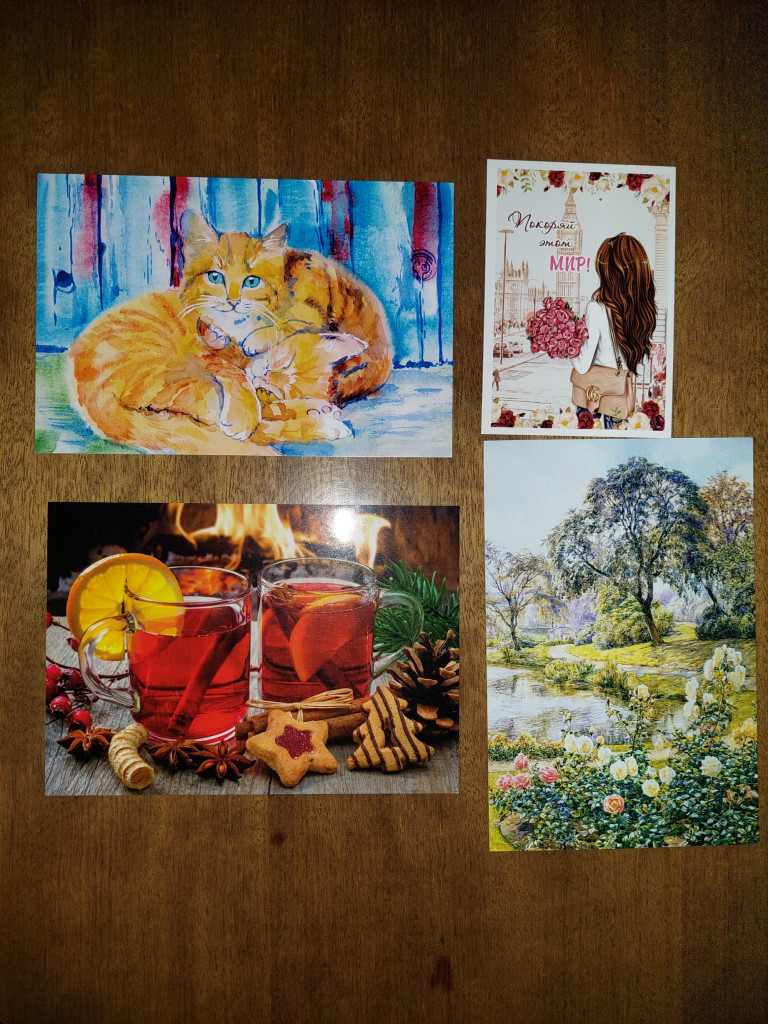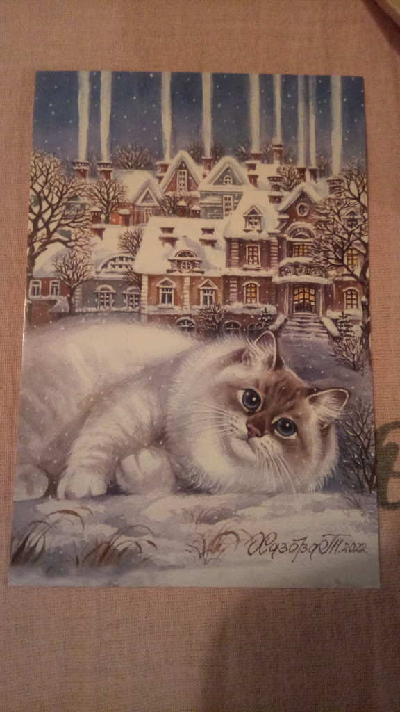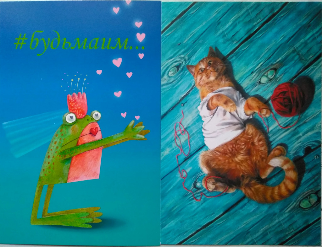 От Жанны пришли чудесные открыточки и с котиком, и с гусями, и с лягухой, в общем всё, что мне нравится и всё, что я люблю
