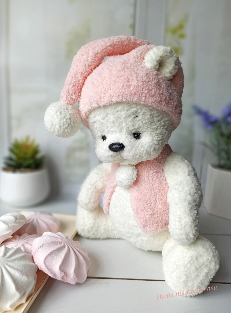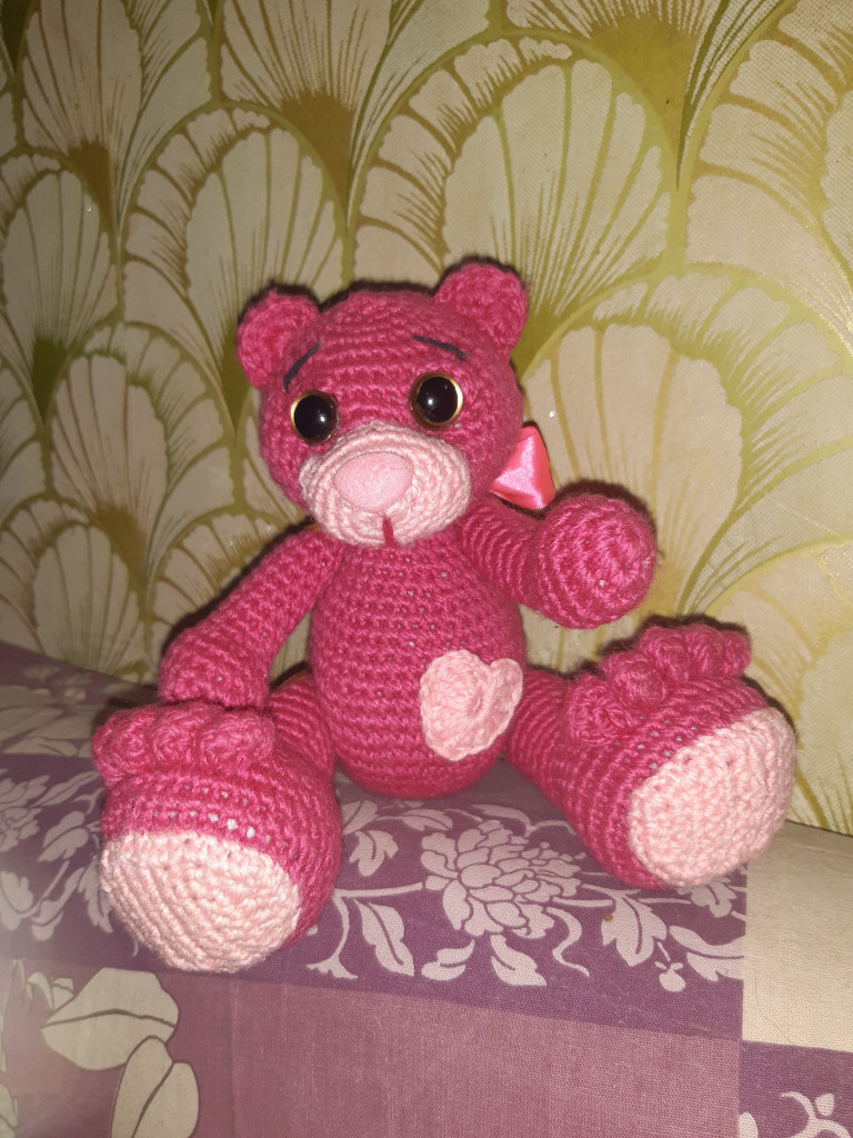 Доброго времени суток всем форумчанам) меня зовут Ольга, и вот мой мишка, связанный для дочки одногрупницы)