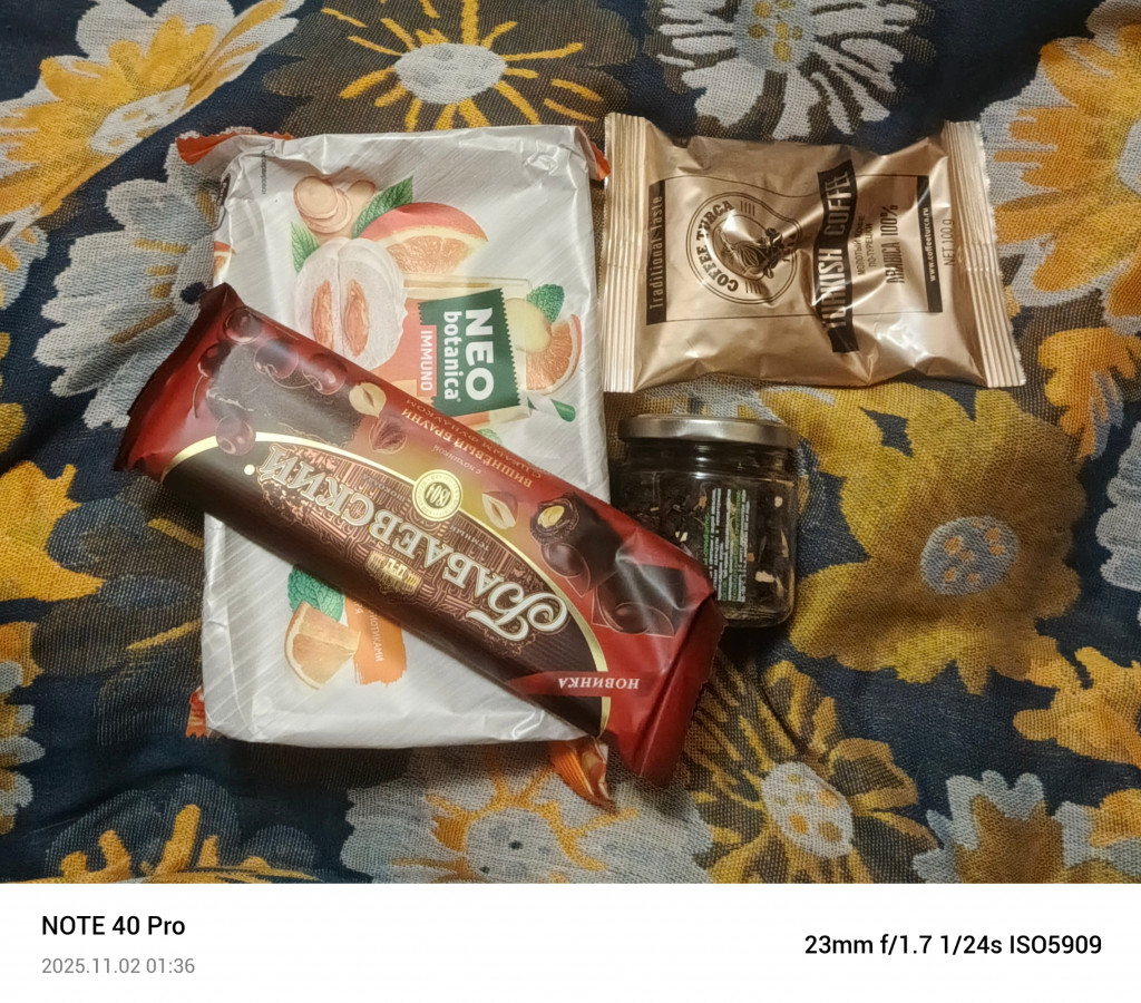 и привёз с собой сладости и нужности.