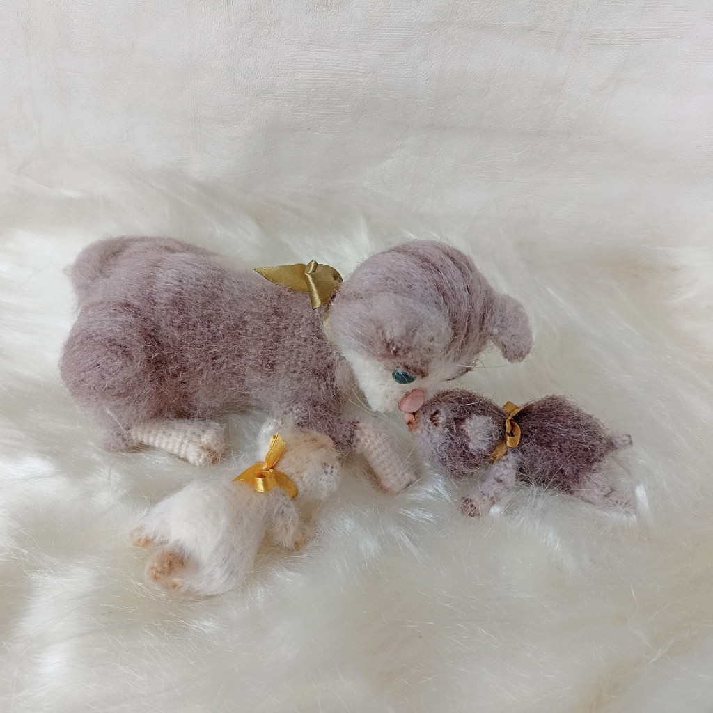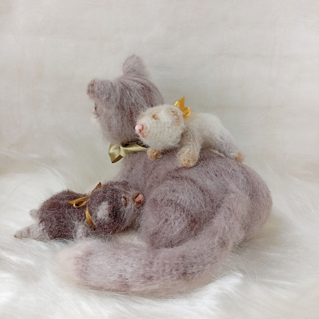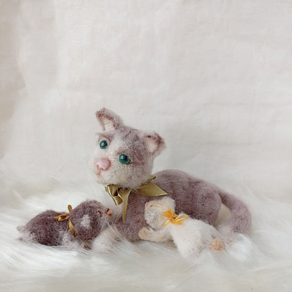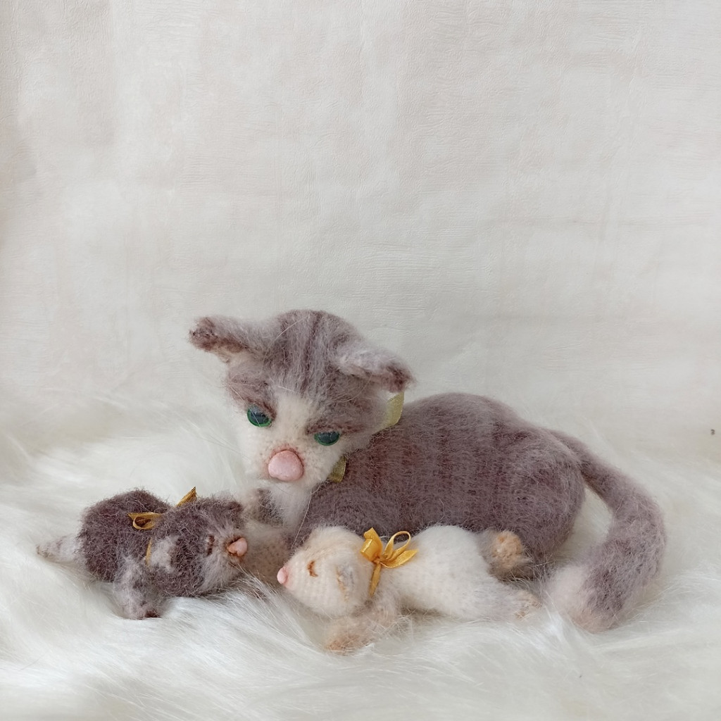 Кошка Мурка с котятами. Связан по мк Эльвиры Супонькиной (Киса Плюс)