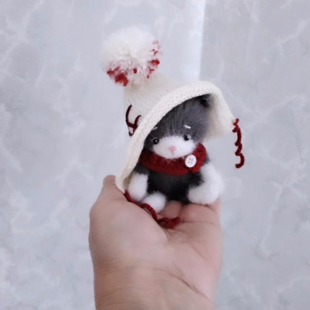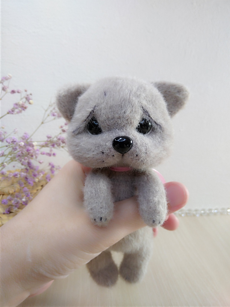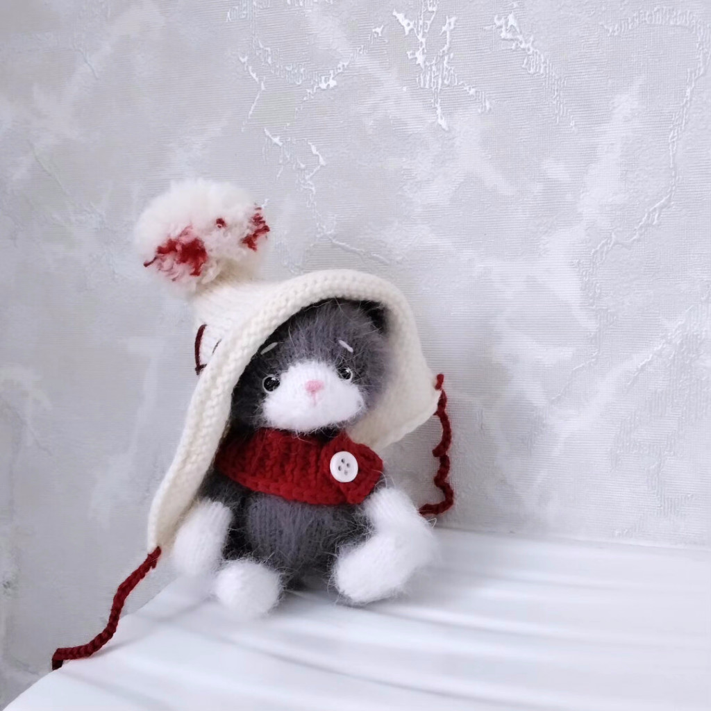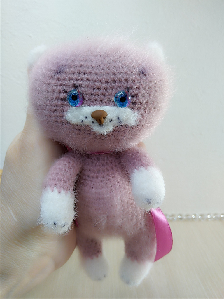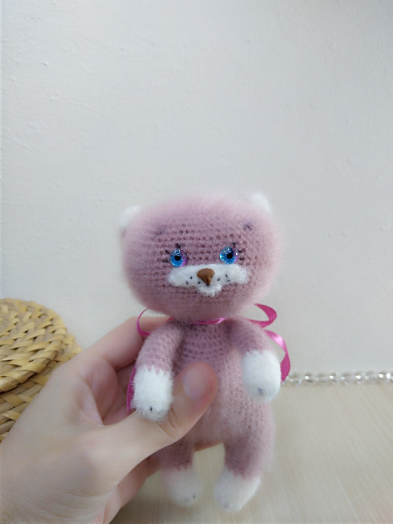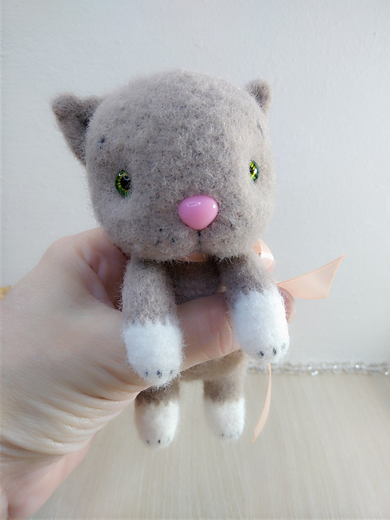 Котенок Васечка связан спицами 1,5 из пуха норки, голова,ручки,ножки на шплинтах. Рост получился 10 см сидя.