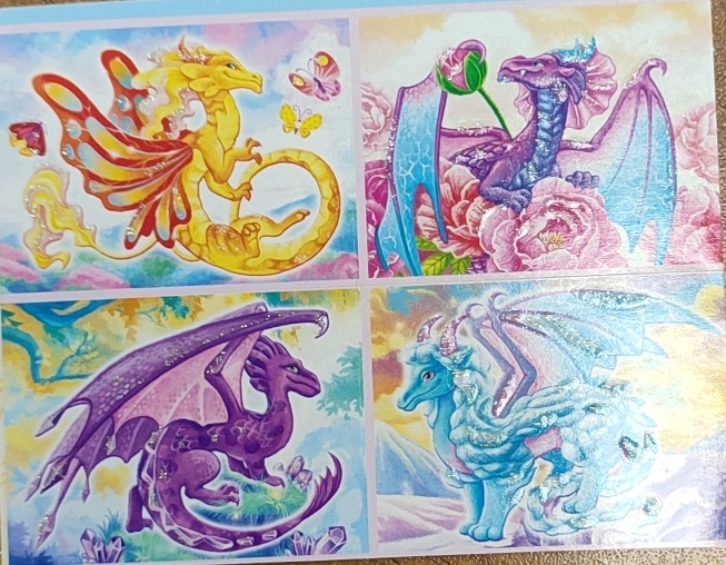 от @lelyoka72 сказочные зверьки, а уж каокй оборот открытки (мне бы так уметь оформлять) + наклеечки драконы.