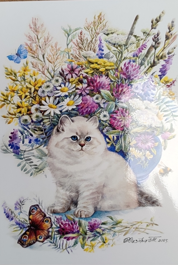А ещё вот такая чудесная открытка прилетела от @МариМари . Машенька, спасибо за котика :kat: