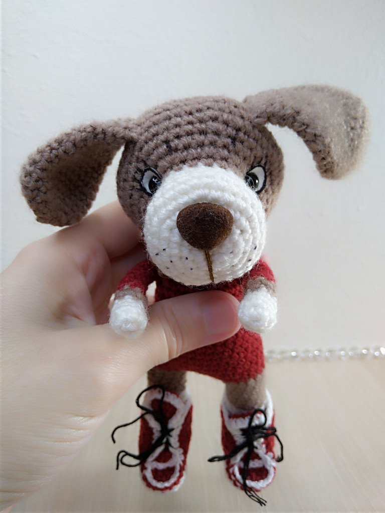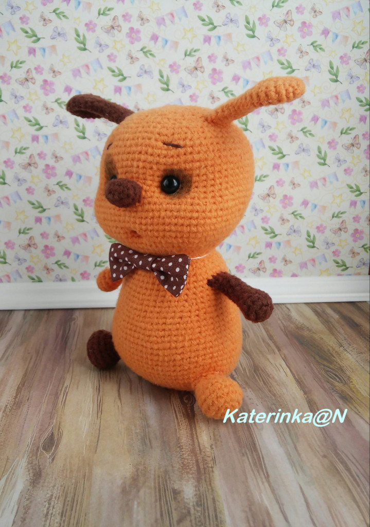 Бимка, спасибо Анне Садовской. Связан крючком из пряжи Adelia Kiss. Ростик 15 см, без учета ушек, все детальки ввязаны.