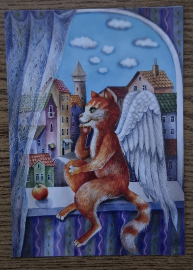 От Оленьки @lelyoka72 пришла открытка из игры Д - девушка и сюрпризная осенняя открыточка. Оля, как ты угадала, мне очень нравятся открытки Анастасии Малышевой. Котик невозможно милый, а какой птиц прикольный сидит в дупле и вяжет носок))