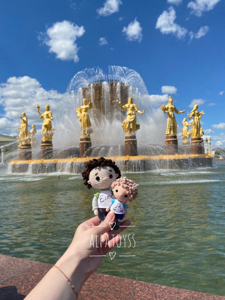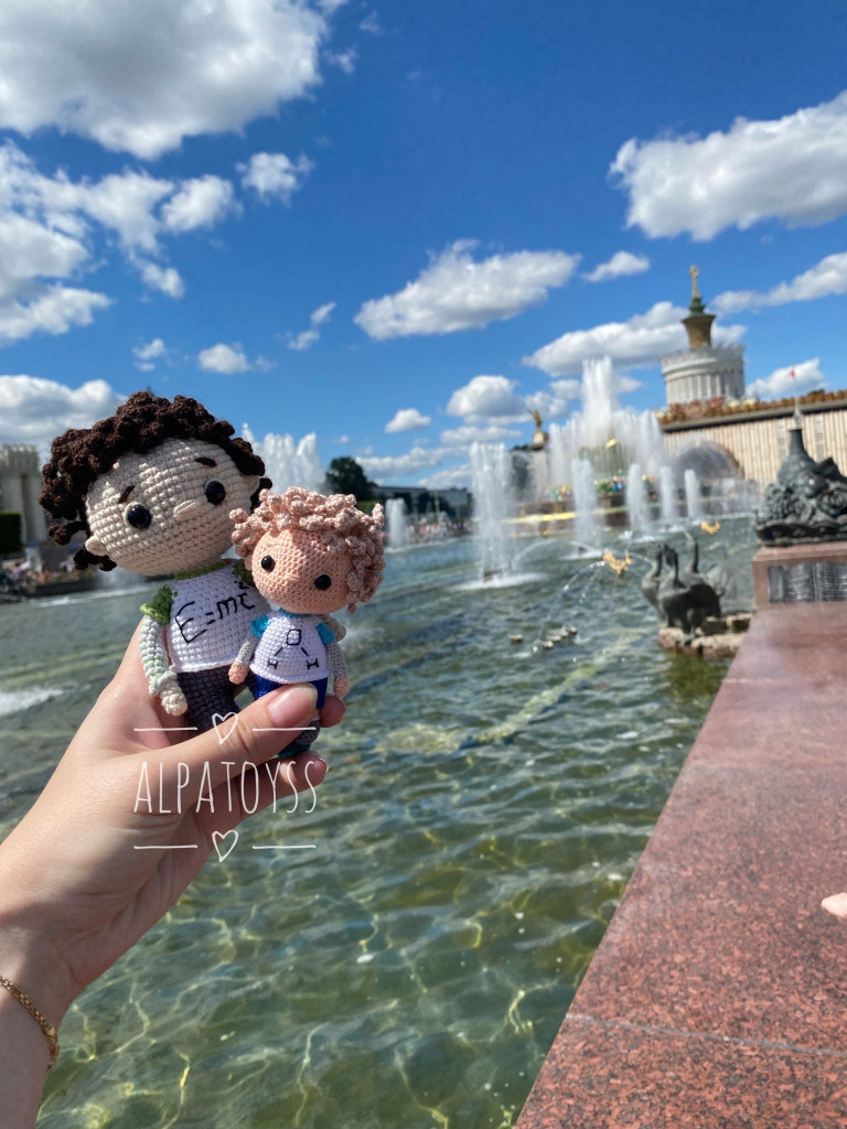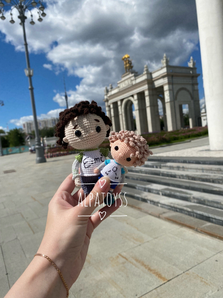 У меня двое сыновей, поэтому мне захотелось связать 2 миниатюрные копии моих мальчишек по описанию Евгении Дунаевой. Одно описание, но разная пряжа и крючок - совсем разные ребята получились)