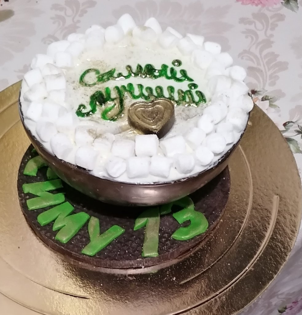 Какой интересный тортик , верх просто снимается или разбивается?