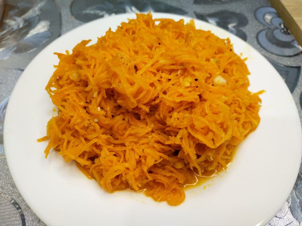 Морковь помыть, почистить, натереть на терке для моркови по-корейски.