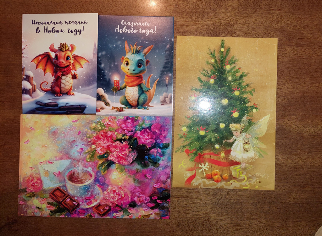 В нём новогодняя открытка с феечкой моего любимого автора Е.Бабок, цветочки, маленькие открытки с дракошами. Всё в мою коллекцию. :adore: Красота! :good: