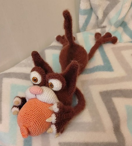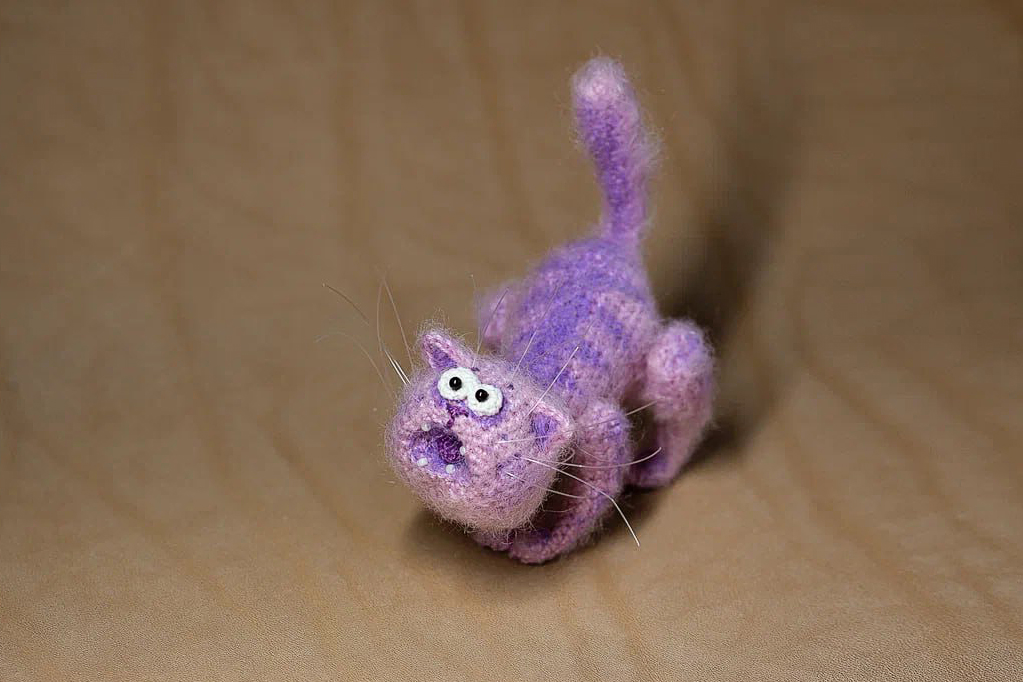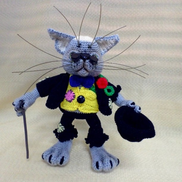 Кошка связана по МК китайского мастера. Полностью на проволочном каркасе.