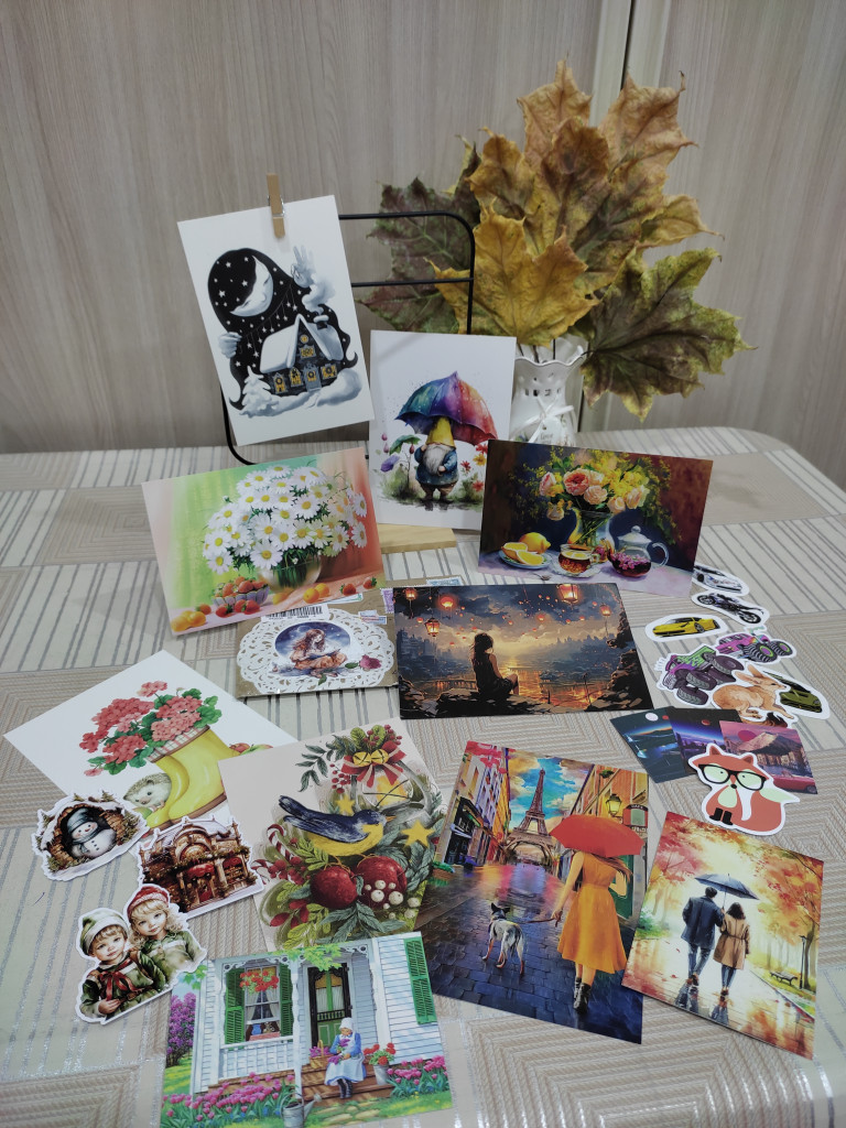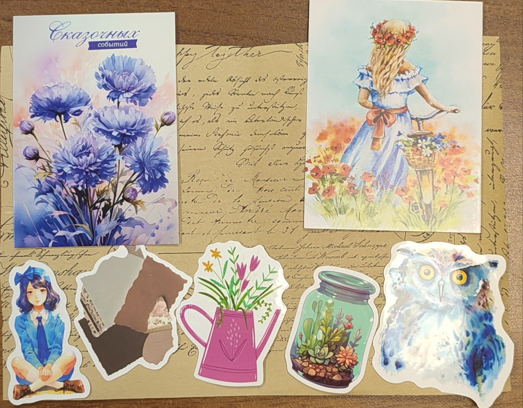 А ещё сюрпризные открытки, наклейки, украшалочки.