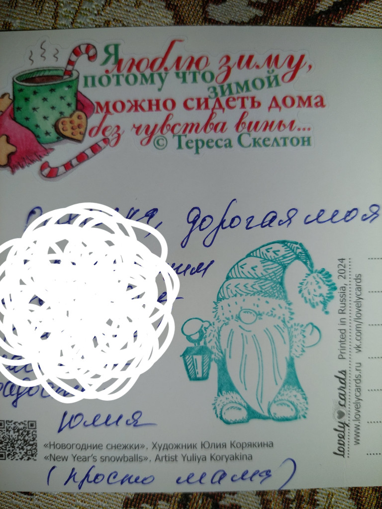 Юленька, меня на обе)Просто мама писал(а): ↑23 дек 2024 21:20 Дорогие девочки!! Сегодня я получила открыточки. Если они вам нравятся я с радостью пришлю вам, давайте разыграем...
