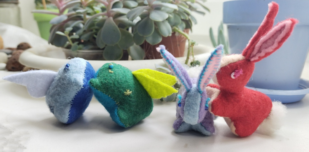 Временами хочется шить из фетра вот таких пухленьких жабок с крылышками и зайчиков или все же осликов