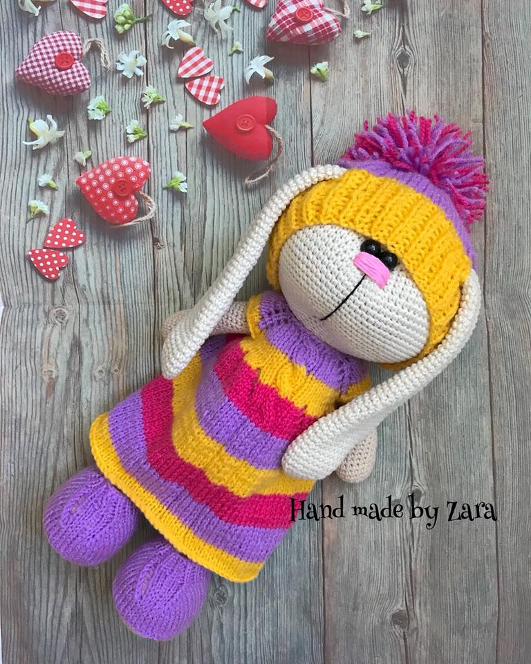 Дилли. Связан из мохера, ростиком без ушей 23 см, с ушами 35 см. МК Полины Pola