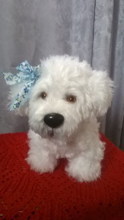Моя дорогая Жозефина, для домашних просто, Жози) Связана из Ализе реал 40,воротничок-жабо из Ласки от Назар, в онлайне с Людмилой Шведовой по волчонку Грэю у меня получилась собачка.