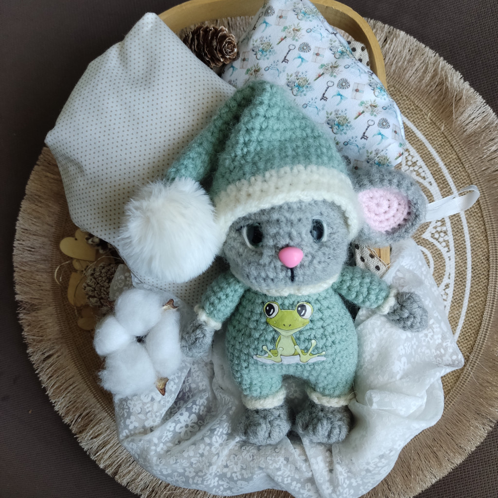 Давным давно в конце 2019 года я участвовала в онлайне по вязанию Санта Мауса по мк Ирины Чернявской, но так его и не довязала, и вот сейчас в рамках марафона по недовязам я его закончила, но т.к. сейчас весна естественно это получился не Санта Маус, а весенняя крошка-мышка