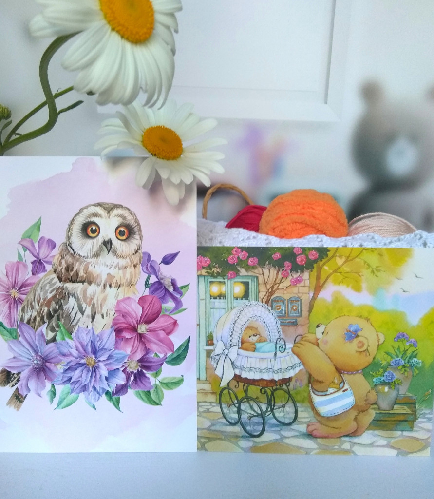 Девчонки, привет. А меня сегодня ждал сюрприз в почтовом ящике. Прилетели ко мне замечательные открыточки от Юли @Просто мама . Смотрите, какой мишаня с ангелочком, а ещё открыточки с котиками в мою коллекцию.