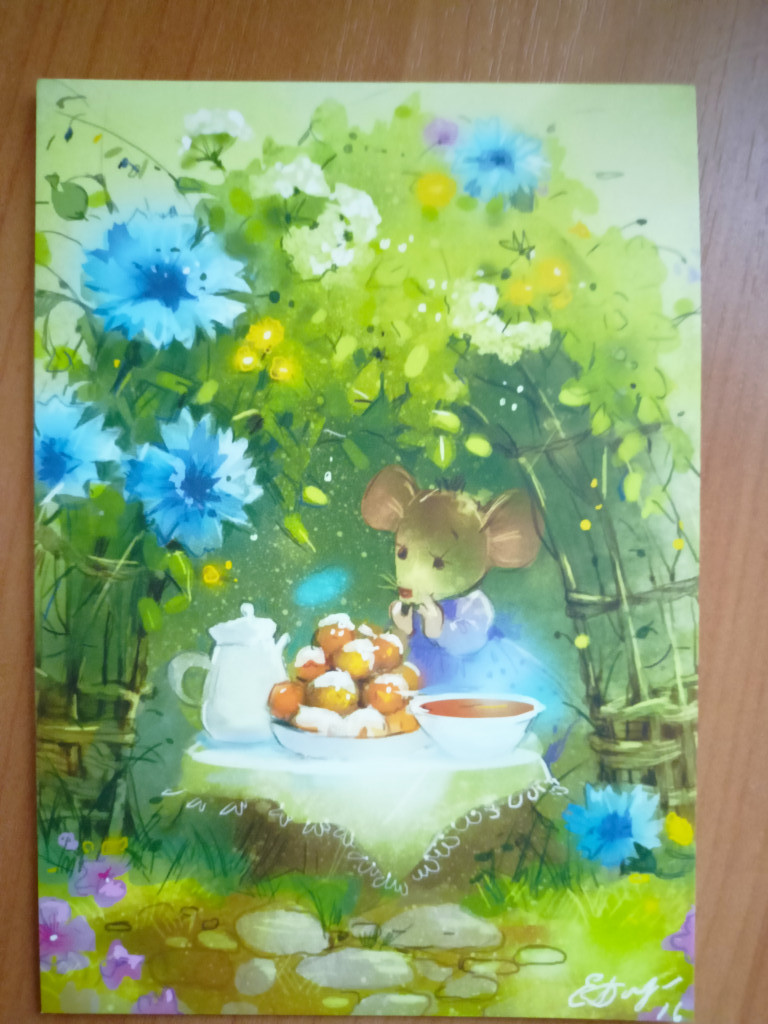 Ура! Мне пришла первая открытка по Мишковому обмену! От Лизы, дочки @Просто мама - вот такая чудесная открытка