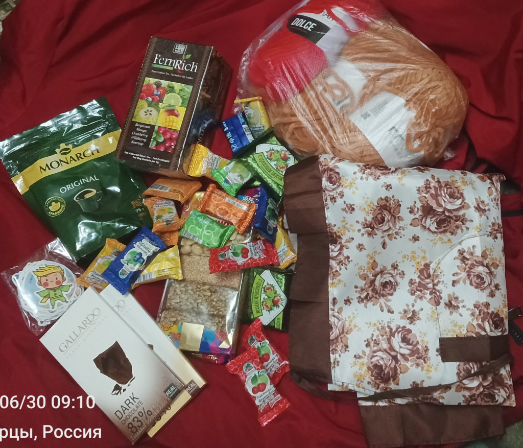 Посылочку получила ещё в среду, но тут же уехала к сыну, так что открыть не было возможности. Думала, что вернусь в субботу, но получилось только сегодня.