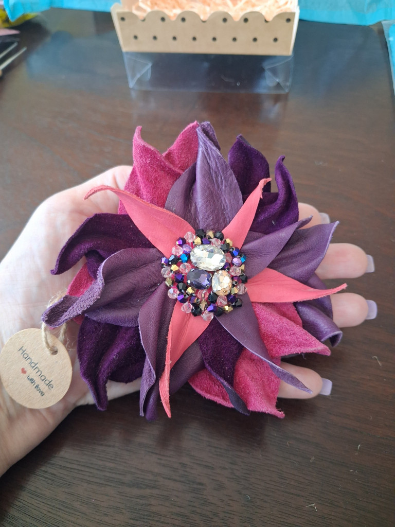 Только открыла, уже красота Дальше больше, сладости и чаек Красивые салфеточки с цветочным принтом и такой всегда необходимый крем для рук Очень большая радость для моего хомяка, все очень нужное, особенная радость крючки маленького размера, они у меня чаще всего в ходу, конечно же пряжа, которой всегда не хватает. Ну и главные героини, из-за которых, собиралась посылочка Очень красивые цветочные броши, одна на лето, одна на межсезонье, шикарный цветок из кожи, тяжеленький, классно будет смотреться на бактусе или шарфе.