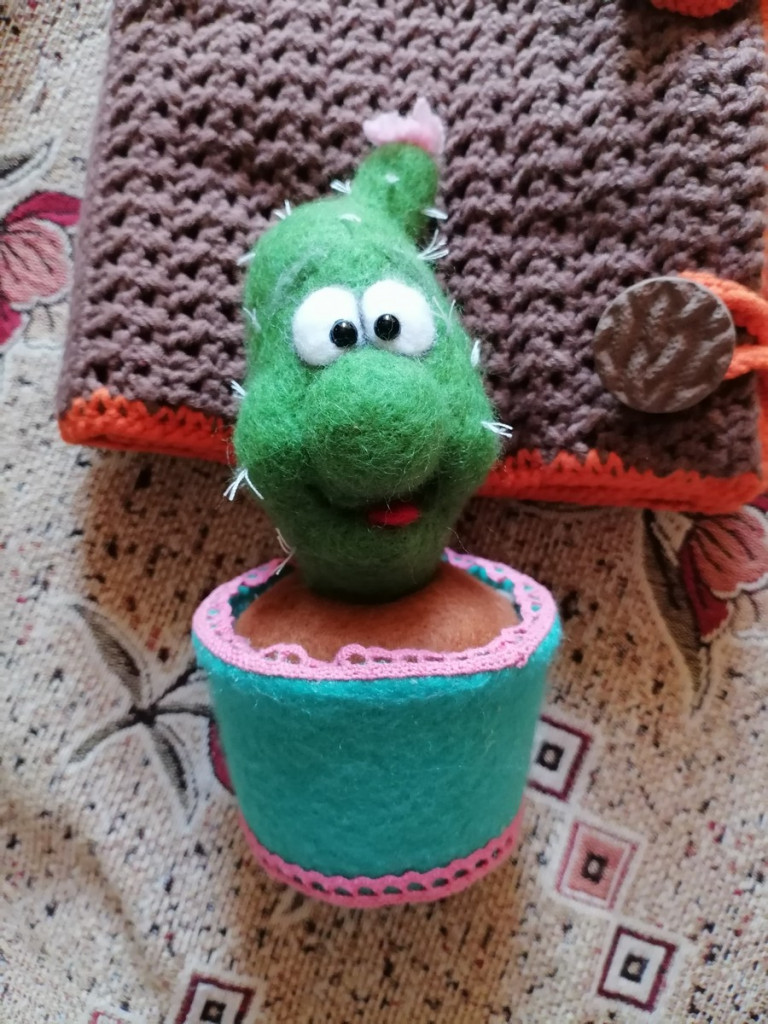 Ну и самое главное то что там было,это лежало вот в этой коробочке открыв я там увидела КАКТУС да не простой а ВАЛЯНЫЙ. Я в восхищении так как до сих пор так и не удосужилась научится валять игрушки. .И ОН был не один с ним лежал чудесный органайзер,надеюсь вот теперь то точно все мои оставшиеся лежать в коробке крючки будут лежать так как и положено Наташенька Огромное СПАСИБО за чудесные подарки!!!!