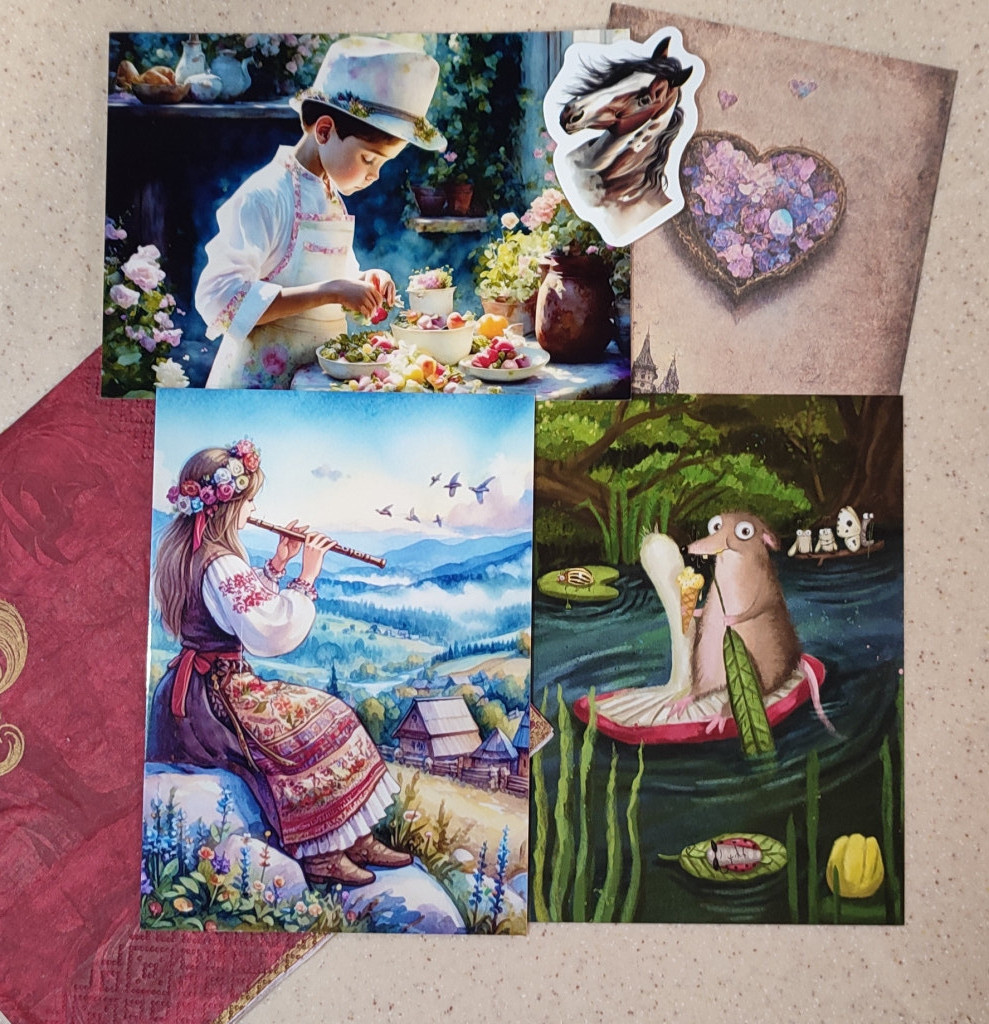А еще от нашей феечки Жанны я получила как обычно (но каждый раз вдохновляет и восхищает) красивущий конверт с открытками с лотереи