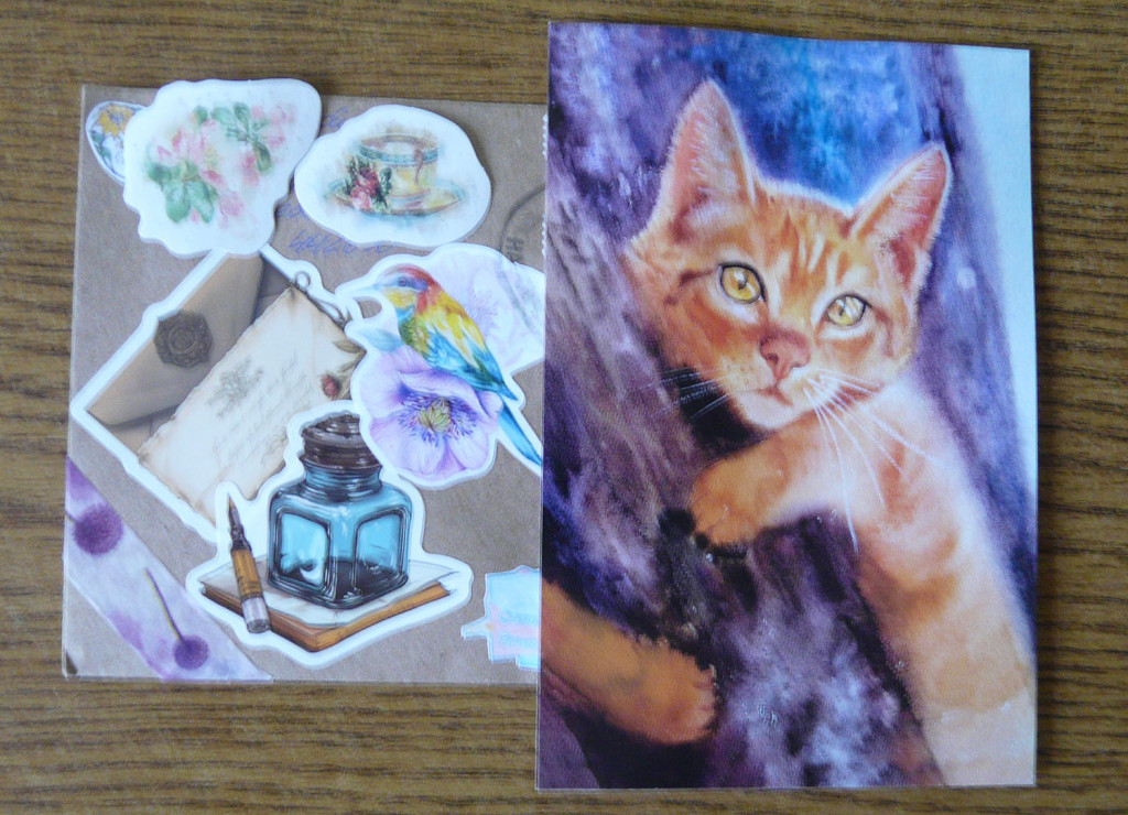 Привет. И ко мне два конвертика прилетело. От @nisana по игре Алфавит-3 (Н - наблюдатель) и от @lelyoka72 по играм Алфавит-1 (Ч - чашка) и Алфавит-2 (И - игрушки)+ сюрпризом наклейки и котик.