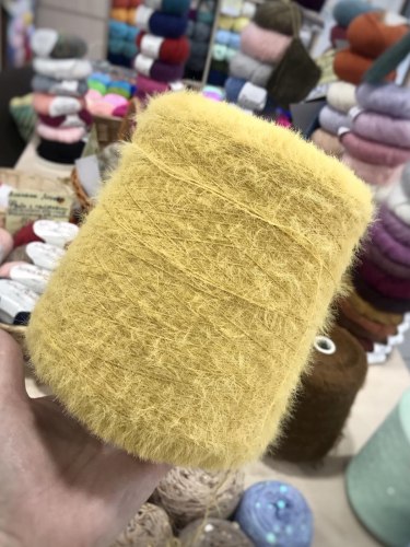 Для него запасайтесь нитками такого же метража, как основная пряжа. Подойдёт велюр, акрил или такая же меховушка ярких цветов. У моего праздничного ослика свитер из тонкого велюра.