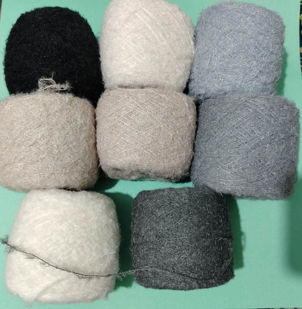 Любая пряжа – меховушка или содержащая мохер, подходящего цвета метражом 100г/700 м в две нити или 100 г/500 м примерно 30-40 г основного цвета и дополнительного белого – 5-10 г, Лебяжий пух или Травка черного цвета для гривы;
